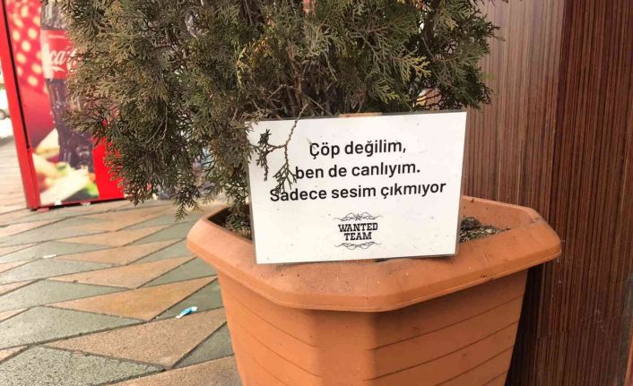 Eskişehir’de bir kafe, dükkanın önünde yer alan çiçek ve ağaç diplerine sigara izmaritlerinin söndürülmesinden dolayı saksılara ‘Çöp değilim, ben de canlıyım. Sadece sesim çıkmıyor’ yazılı önlem alarak çevre kirliliğine dikkat çekti.