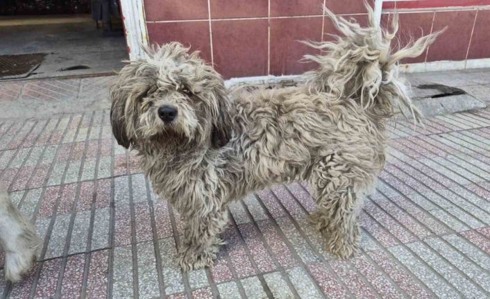 Eskişehir Küçük Sanayi Bölgesi’nde tüylerinin kirlenmesi sonucu adeta kapkara olan beyaz renkli süs köpeği görenlerin ilgi odağı oldu.