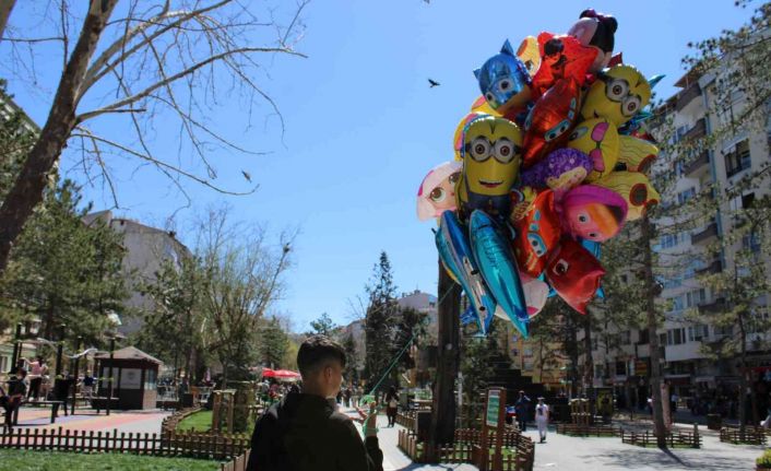 Hava sıcaklıklarının artmasıyla hafta sonu parklar dolarken, satıcılarda ekmek paraları için park ve caddelere çıktı. Çocukların vazgeçilmezi arasında yer alan renkli balonlarda parklara indi. Park ve caddelerde balon satarak harçlığını kazanan Seymen Ersoy, haftasonu balon satışlarının arttığını söyledi. Balonları daha çok Hamamyolu ve Doktorlar Caddesi’nde sattığını ifade eden 16 yaşındaki Ersoy, "Hava sıcaklarının artması bizimde işlerimizin açılmasına neden oluyor. Sıcak havayı gören çocuklar parklara geliyor. Bizlerde daha çok satış yapabiliyoruz. Elimde uçak, baykuş kız, atom ve makaron gibi 10-15 çeşit balon var. Özellikle hafta sonları saat 16.00’dan sonra işlerimiz açılıyor. Bir balon fiyatı 25 ile 30 lira arasında değişiyor. Çocukların ellerinde telefonlar yerine sattığım balonları görmek, beni inanılmaz sevindiriyor” dedi.
