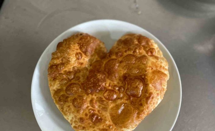 Sevgililer Günü’nde aşkı simgeleyen ürünler dükkânlarda ve raflarda yer alırken, çeşitli tatlar da bugüne özel olarak şekillendi. Eskişehir’in özgün bir lezzeti olan ve genellikle yarım ay şeklinde hazırlanarak ikram edilen çibörek, bir işletme tarafından 14 Şubat Sevgililer Günü’ne özel kalp şeklinde pişirildi.