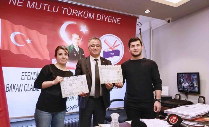 Berberler ve Kuaförler Odası’nda üyelere belgelerini veren Fethi Özkara, “2021 yılı 2. dönem kalfalık ve ustalık sınavları yazılı ve uygulamalı olarak odamızda yapılmıştır. Bu sınavlarda 2 kişi ağdacılık kalfalık, 1 kişi ağdacılık ustalık, 6 kişi dövmecilik ustalık sınavı olmak üzere toplam 9 kişi yapılan sınavda başarılı olup belgelerini almaya hak kazanmışlardır” dedi.