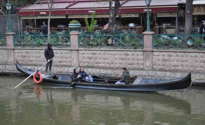 Eskişehir’de soğuyan havaya ve hafif yağmura rağmen gondola binen vatandaşlar, Porsuk çayının tadını çıkardı.