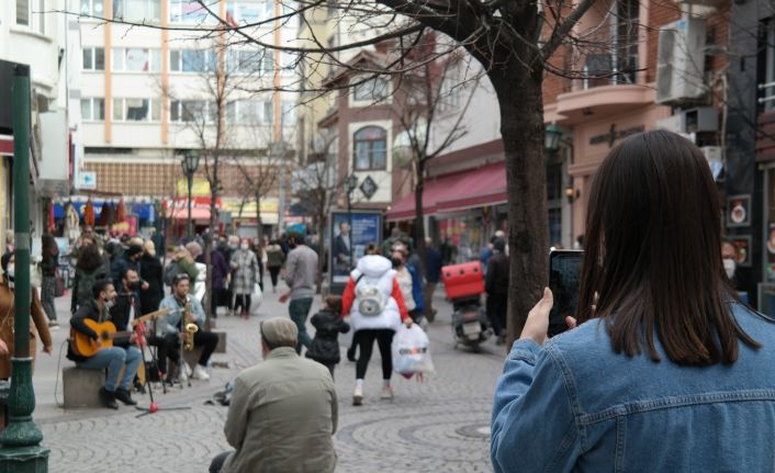 Odunpazarı ilçesinin Arifiye Mahallesi Yalbı Sokak üzerinde kurdukları çalgı aletleri ile şarkılar söyleyen müzisyenler kısa sürede vatandaşların ilgisine neden oldu. Söylenen şarkılara eşlik eden vatandaşlar, bu keyifli anları cep telefonlarıyla kayda almaya başladı.