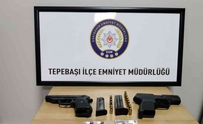 Tepebaşı İlçe Emniyet Müdürlüğünce ilçe genelinde farklı saatler ve mahallelerde halkın huzur ve güvenliğini sağlamak amacıyla asayiş uygulamaları yapılıyor. Bu kapsamda önceki gece saat 21.40 sıralarında Tepebaşı İlçe Emniyet Müdürlüğüne bağlı bekçi yaya devriyeler tarafından Gazi Yakup Satar Caddesi üzerinde durumundan şüphelenilen bir araç durduruldu. Yapılan incelemede içerisinde O.Ö., M.Ş., A.A. ve İ.S. isimli şahısların olduğu aracın gözle görülür kısmında 26 adet sentetik ecza hap, 2 adet tabanca ve 13 adet fişek ele geçirildi. Konu hakkında tahkikat başlatıldı.