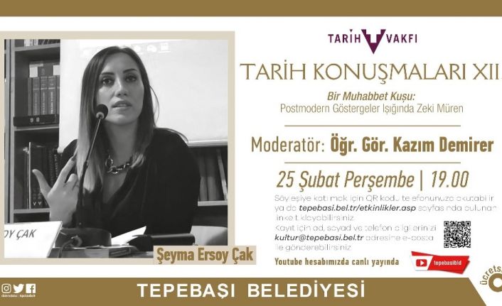Eskişehir Tepebaşı Belediyesi ve Tarih Vakfı iş birliğinde düzenlenen Tarih Konuşmaları’nın 12.’si, “Bir Muhabbet Kuşu: Postmodern Göstergeler Işığında Zeki Müren” söyleşisi ile online olarak devam edecek.
