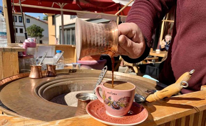 Tarihi Odunpazarı Bölgesi’ni ziyaret etmeye gelen vatandaşlar, hem ısınmak hem de lezzetinden dolayı kış mevsiminde kumda kahveyi daha çok tercih ediyor. Soğuk havaların etkisini göstermeye başlamasıyla birlikte kafelerde vakit geçiren turistler ise içecekler arasında kumda kahveye ilgi göstermeye başladı.
