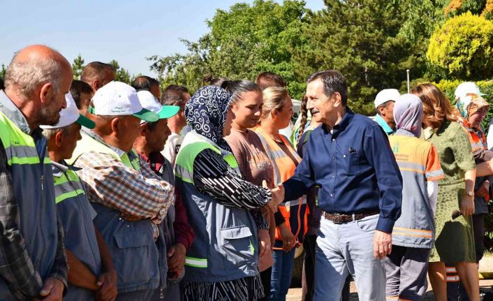 Bayramlaşma töreninde Tepebaşı Belediyesi emekçilerine seslenen Başkan Ataç, “Tepebaşı Belediyesi, Türkiye’de ayrıcalıklı bir belediye konumuna geldi. Bunda hepinizin tek tek emekleri var, elinize, ruhunuza sağlık. Biz rutin çalışmalarımızı en iyi şekilde devam ettireceğiz. Fen İşleri, Park ve Bahçeler gibi belediye hizmetlerimiz, yaz