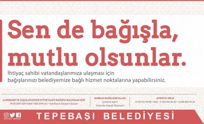 Tepebaşı Belediyesi her yıl olduğu gibi bu Kurban Bayramında da duyarlı vatandaşların bağışlarını, ihtiyaç sahiplerine ulaştıracak.