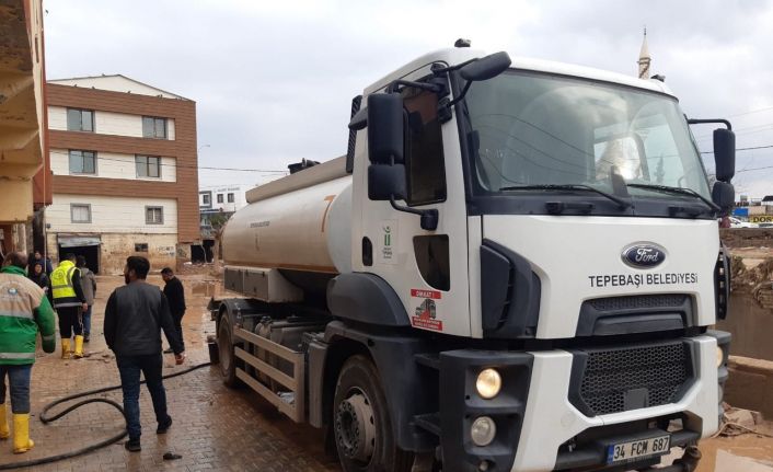 Tepebaşı Belediyesi Temizlik İşleri Müdürlüğü arazözü sel bölgesine müdahale amacıyla Şanlıurfa’da görev yaptı.