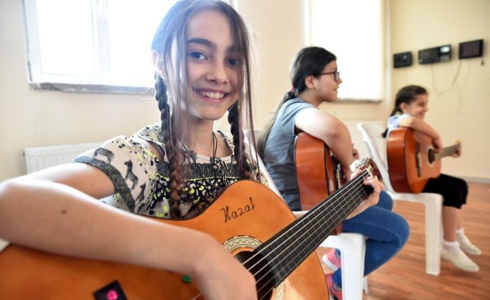 Tepebaşı Belediyesi yaz okulları kapsamında açılan gitar kursuna çocuklar yoğun ilgi gösteriyor.