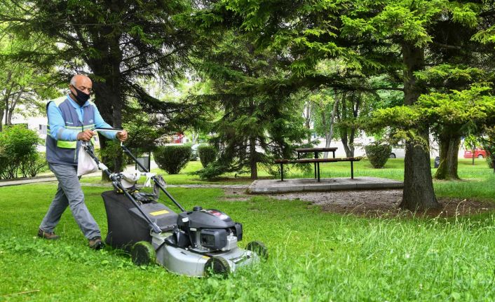 Tepebaşı Belediyesi ilçedeki parkların bakım çalışmaları ile birlikte çim biçme işlerini sürdürüyor.
