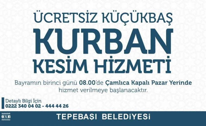 Çamlıca Kapalı Pazar Yeri, bayramın ilk gününde kent halkının hizmetinde olacak. Küçükbaş kurbanlıkların ücretsiz kesim hizmeti sunulacak olan alanda kesim işlemleri saat 08.00 itibari ile başlayacak. Tepebaşı Belediyesi yetkilileri, pazar yerinde belediye tarafından yapılacak hazırlıklar ve alınacak tedbirler ile hijyenik bir kesim alanı oluşturulacağını bildirdi. Kurban ibadetini yerine getirmek isteyen Eskişehirliler, kesim alanından sağlıklı ve huzurlu bir şekilde yararlanabilecek.