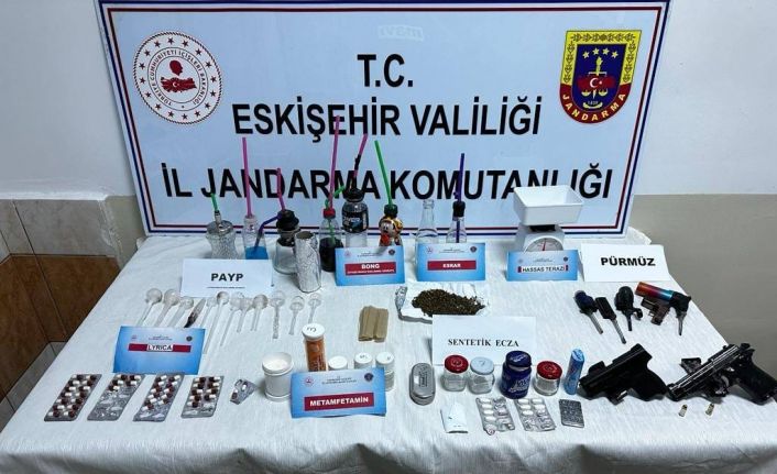 Eskişehir İl Jandarma Komutanlığı ekipleri uyuşturucu imalatı ve ticaretini yaptığı tespit edilen şüphelilere yönelik yaptığı çalışmalarda, farklı miktarlarda uyuşturucu madde ile 2 adet silah ele geçirdi.
