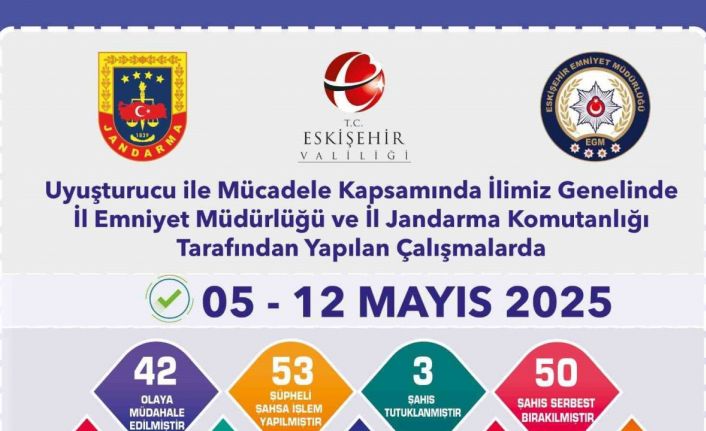 Edinilen bilgilere göre, İl Emniyet Müdürlüğü ve İl Jandarma Komutanlığı ekiplerinin uyuşturucu ile mücadele çalışmaları sürüyor. Bu çerçevede, 5-12 Mayıs 2025 tarihleri arasında kent genelinde çalışma yapıldı. Ekiplerin 42 olaya müdahale ettiği çalışmalar sonucunda 53 şüpheliye işlem yapılırken, 3 şahıs tutuklandı ve 50 şahıs serbest bırakıldı. Ayrıca, 21,21 gram metamfetamin, 82 adet sentetik ecza, 40,64 gram esrar, 3 adet ecstasy hap, 541,22 gram bonzai, 4 adet hassas terazi ve 4 adet uyuşturucu kullanma aparatının ele geçirildiği belirtildi.