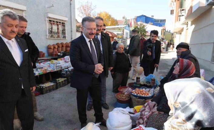 Eskişehir’de semt pazarını ziyaret eden Vali Hüseyin Aksoy, esnafla bir araya geldi.