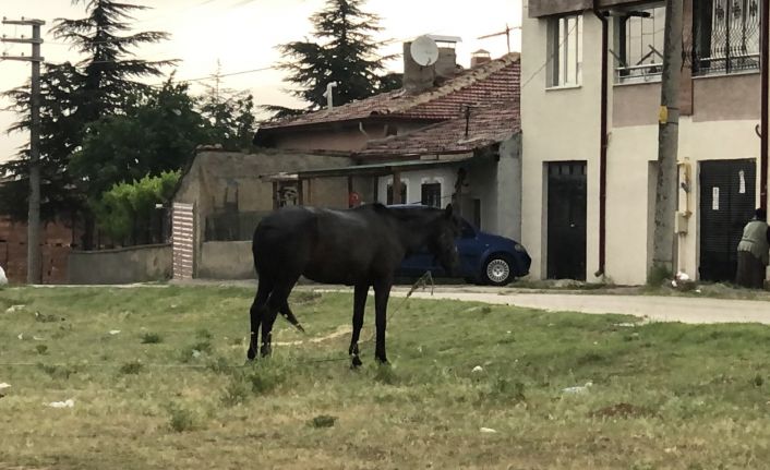 Meteoroloji 3. Bölge Müdürlüğü’nün uyarısını yaptığı yoğun yağmur yağışı Eskişehir’de etkisini gösterdi. Aniden bastıran yağmurdan insanlar kaçarken bazı hayvanlar gene unutuldu. 71 Evler mahallesindeki boş bir arazide otlanması için bırakıldığı tahmin edilen sahipli atın, yağmur altında ıslanıp sırılsıklam kalması dikkat çekici bir görüntü sergiledi.
