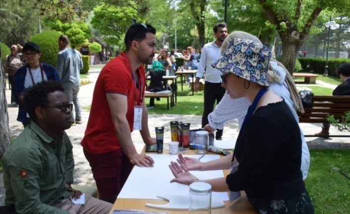Eskişehir Anadolu Üniversitesi’nde düzenlenen panayırda, eğitim gören 16 yabancı öğrenci ile 16 Türk öğrenci ortak resim çalışması yaptı.