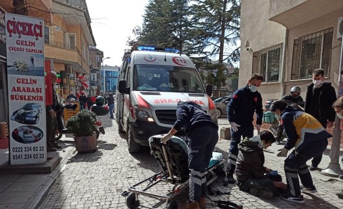 Paket servisi yapan kurye, ara sokakta bir anlık dikkatsizlik motosikletinin bir aracın çarpması sonucu kendisini yerde buldu.
