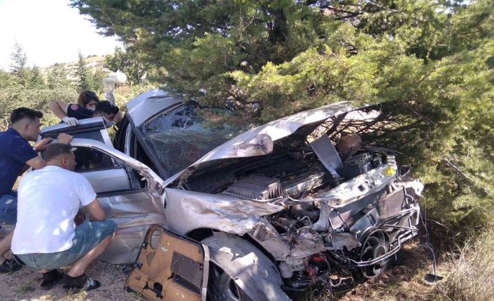 Eskişehir’in Seyitgazi ilçesinde yol kenarında bulunan ağaçlara çarpan otomobilin sürücüsü yaralandı.