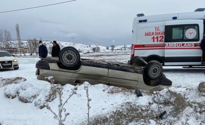 Yoldan çıkarak takla atan otomobildeki 2 kişi yaralandı