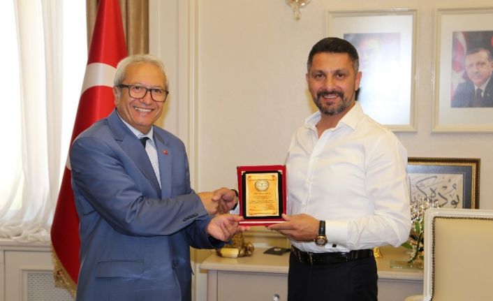 TÜM - KARDER Genel Başkanı Osman Işık ve beraberinde yer alan heyet turizm, kültür, sanat ve eğitim alanında başarılı çalışmalar yapan Sivrihisar Belediye Başkanı Hamid Yüzügüllü’yü makamında ziyaret ederek yılın belediye başkanı plaketini takdim ettiler.