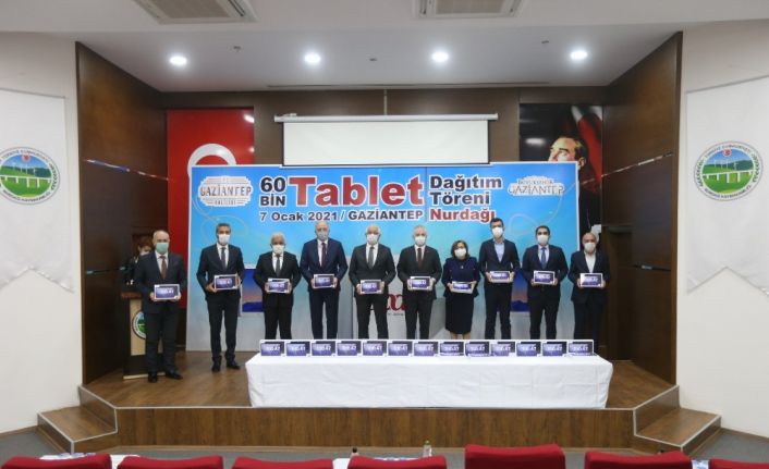 Gaziantep Valisi Davut Gül, Türkiye’de dağıtılan tabletlerin yüzde 14’ünün Gaziantep’te dağıtıldığını aktararak, “Bu oranlar doğrultusunda kentte 68 bin 540’ın 60 binini Büyükşehir Belediyesi ve diğer paydaşları tamamladı. Büyükşehir Belediyesi çevre yedi ilçede dağıtımı yaptı, merkezde Şahinbey ve Şehitkamil Belediyesi’nin eksiklerini tamamladı. Sorunlarımız var ama çözülenlere baktığımızda sorunların çok çok azaldığını görüyoruz. Şahinbey ve Şehitkamil belediyeleri şehrin nüfusunun yüzde 85’ini oluşturuyor ve bundan dolayı ekonomik imkanları fazla. Gaziantep Büyükşehir Belediyesi de diğer yedi ilçemiz için merkezi ilçelerde ne varsa bu ilçelerde de olsun diye uğraşıyor. Burada da 20 bin tablet bağışladılar. Dağıtımları yaptık ‘Varını veren utanmaz’ aslolan bunu devamlı kılmak kendine dert edinmek” dedi.