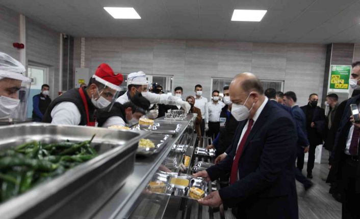 Çalışma ve Sosyal Güvenlik Bakanı Vedat Bilgin Merinos Halı tesislerini ziyaret ederek fabrika çalışanlarıyla birlikte yemek yedi. Bakan Bilgin, işçilerle birlikte sıraya girerek yemeğini kendisi aldı.