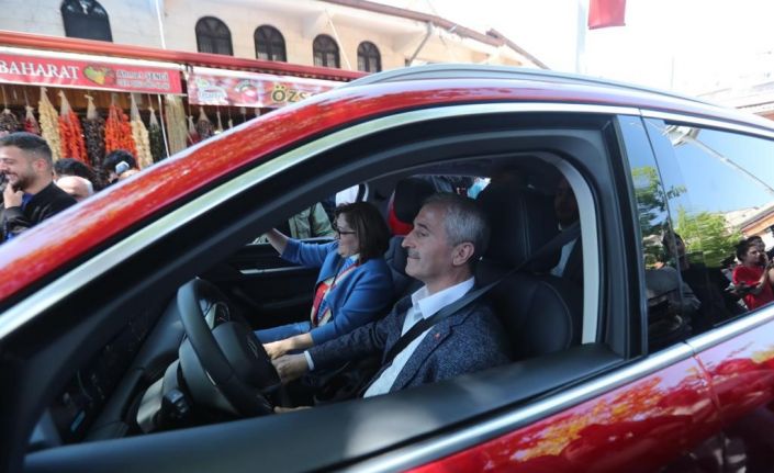 Şahinbey Belediye Başkanı Mehmet Tahmazoğlu, TOGG’nun vatandaşlarla buluştuğu tanıtım programında Türkiye’nin ilk ve yerli otomobilini sürerek, test etti.