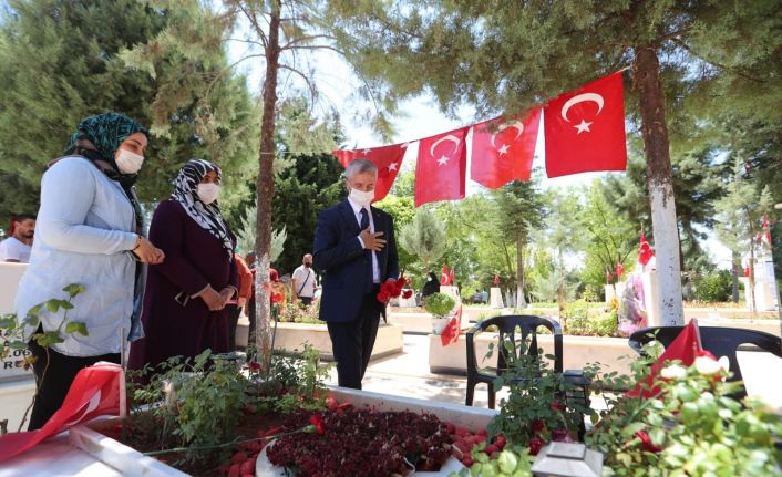 Şahinbey Belediye Başkanı Mehmet Tahmazoğlu, Vali Davut Gül ile birlikte Kurban Bayramı öncesinde şehit mezarlığını ve şehit ailelerini ziyaret etti.