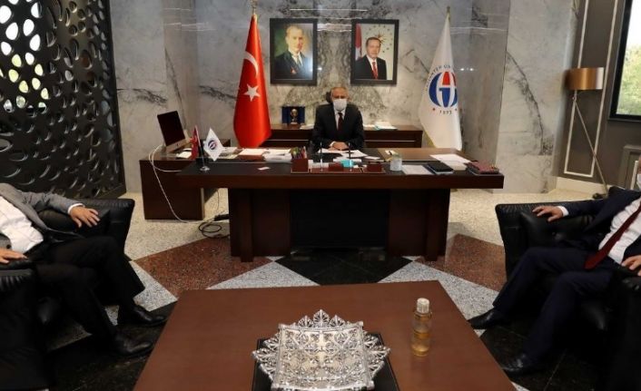 Gaziantep Şahinbey Belediye Başkanı Mehmet Tahmazoğlu ve Oğuzeli Belediye Başkanı Mehmet Sait Kılıç, Gaziantep Üniversitesi (GAÜN) Rektörü Prof. Dr. Arif Özaydın’a hayırlı olsun ziyaretinde bulundu.