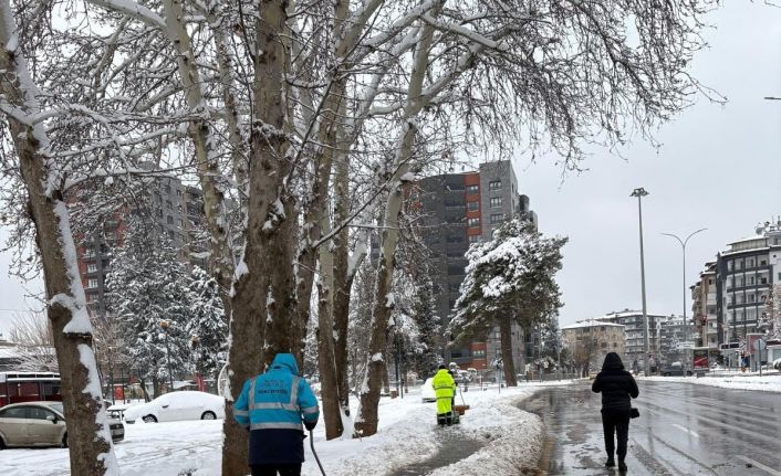 Gaziantep Büyükşehir Belediyesi, kent genelinde etkili olan kar yağışı nedeniyle kaldırım ve yaya yollarında karla mücadele çalışmalarını aralıksız sürdürüyor.