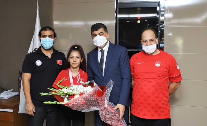 Tokyo Paralimpik Oyunları yüzmede 50 metre sırtüstü S5’de bronz madalya alarak büyük bir başarıya imza atan milli yüzücü Sevilay Öztürk, Şehitkamil Belediye Başkanı Rıdvan Fadıloğlu’nu makamında ziyaret etti. Başkan Fadıloğlu, Türkiye’ye büyük gurur yaşatan Sevilay Öztürk’ü tebrik etti.