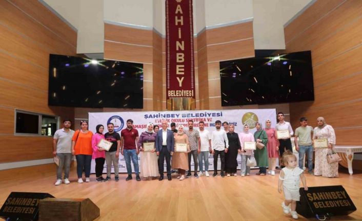 Şahinbey Belediyesi’nin en önemli projelerinden olan Evlilik Okulu Projesinde eğitim gören 312 çift daha Şahinbey Belediye Başkanı Mehmet Tahmazoğlu’nun ellerinden sertifikalarını aldı.