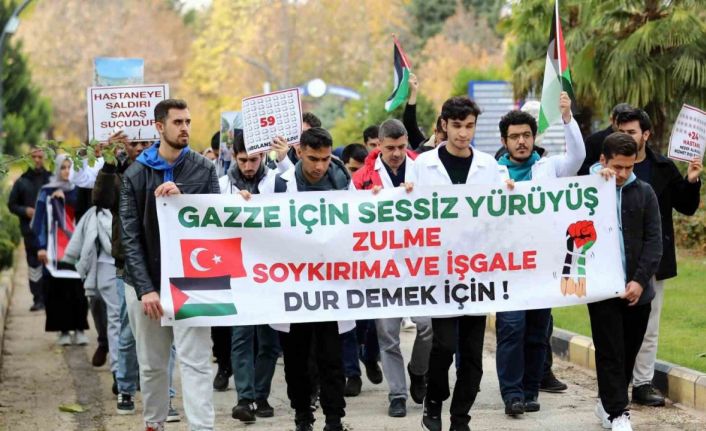 Gaziantep Üniversitesinde (GAÜN) Filistin’e destek amacıyla sessiz bir yürüyüş düzenlendi.