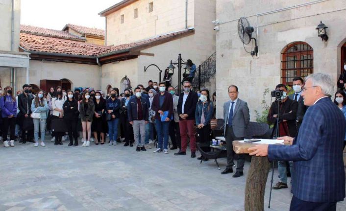 Serginin açılışında konuşan Rektör Prof. Dr. Arif Özaydın sosyal, kültürel, sanatsal faaliyetleri önemsediklerini belirterek, sanatın toplumun aynası olduğunu vurguladı. Milli mücadelenin zor şartlar altında gerçekleştirildiğine değinen Rektör Prof. Dr. Özaydın, öğrencilere tavsiyelerde bulunarak, “Tarihinizi iyi bilmenizi istiyorum, dünü anlamadan bugünü anlayamazsınız. Bugünü anlamadan, geleceği kurgulayamazsınız. Sanat üretemeyen bir toplum ayakta duramaz. Sanatı ve sanatçıyı önemsiyoruz. Gaziantep savunmasının 100’üncü ve Cumhuriyettin 98’inci yılı dolayısıyla böyle bir etkinlik düzenledikleri için emeği geçen herkese teşekkür ediyor, Cumhuriyet Bayramını kutluyorum” dedi.