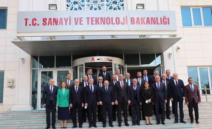 Gaziantep heyeti Ankara’da Sanayi ve Teknoloji Bakanı Mustafa Varank ile görüştü. Görüşmede, Gaziantep Organize Sanayi Bölgesindeki sanayi tesislerinin gelecekte su sıkıntısı yaşamaması ve OSB’nin 10 milyon metrekarelik genişleme alanı için önemli kararlar alındı. Sanayi ve Teknoloji Bakanlığı’ndaki görüşmelere Adalet Bakanı Abdülhamit Gül, Gaziantep Valisi Davut Gül, Büyükşehir Belediye Başkanı Fatma Şahin, milletvekilleri Nejat Koçer, Ahmet Uzer, Müslüm Yüksel, Sermet Atay, Ali Şahin, Derya Bakbak, Mehmet Sait Kirazoğlu, Mehmet Erdoğan, Muhittin Taşdoğan, Sanayi Bakanlığı Genel Müdürü Fatih Turan, Nizip Belediye Başkanı Mehmet Sarı,ve AK Parti MKYK Üyesi Şamil Tayyar, Gaziantep Sanayi Odası Meclis Başkanı Adil Konukoğlu, Gaziantep Organize Sanayi Bölgesi Başkanı Cengiz Şimşek, Yönetim Kurulu Üyeleri Ömer Cıncıkcı, Hüseyin Ulutaş, İbrahim Gümüşoğlu, Özgür Özdağlı, Savaş Mahsereci ve Halil Tepe katıldılar.