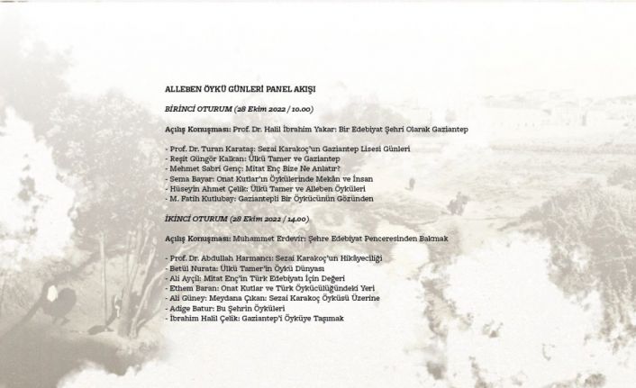 İsmini Gaziantep’in etrafında kurulduğu ve asırlar boyunca Gaziantep şehrinin can damarı olan Alleben Deresi’nden alan Alleben Öykü Günleri’nde Gaziantep’in dünden bugüne Türk edebiyatındaki yeri üzerinde durulurken, şehir edebiyatının büyük ismi Mitat Enç, 1950 Kuşağı’nın güçlü sesi Onat Kutlar, İkinci Yeni’nin lirik şairi ve öykücüsü Ülkü Tamer ve lise öğrenimini Gaziantep’te tamamlayan Sezai Karakoç öykücülükleri yönüyle konuşulacak.