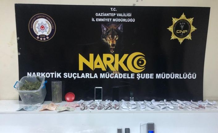 Gaziantep Emniyet Müdürlüğü Narkotik Suçlarla Mücadele Şubesi ekipleri, yürüttükleri başarılı çalışmalar sonucunda Akdere, Boyacı, Yazıcık ve Şirinevler mahallelerinde bulunan 4 ikamete operasyon düzenledi. Ekipler operasyonlarda, 1 Kilo 556 gram eroin, 380 gram esrar, 43 gram metamfetamin, 2 adet hassas terazi ele geçirdi.