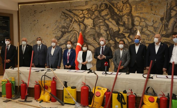 Gaziantep Büyükşehir Belediyesi, Gaziantep Valiliği ve Gaziantep Orman İşletme Müdürlüğü iş birliğinde olası bir yangın tehlikesinde kullanılmak üzere Gaziantep’e bağlı 180 orman köyüne malzeme yardımı yapılması amacıyla protokol imza töreni düzenlendi.
