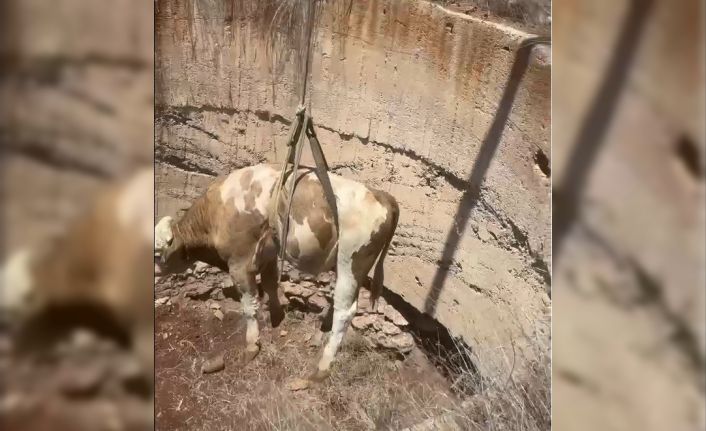 Gaziantep’te karaf çukurunun içine düşen görme engelli dana itfaiye ekiplerinin yardımıyla çıkarılarak sahibine teslim edildi.