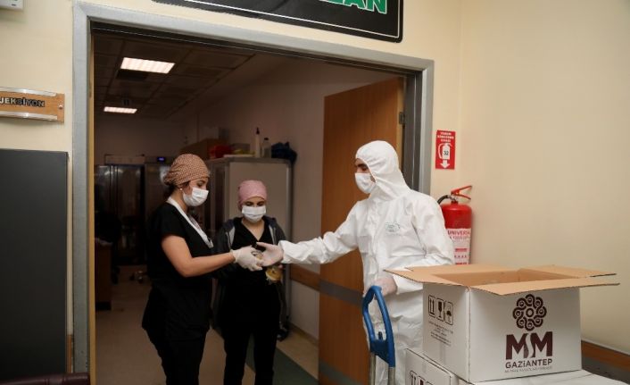 Gaziantep Büyükşehir Belediyesi tarafından korona Virüs’le (COVID-19) mücadelede yoğun mesai harcayan sağlık çalışanlarına tatlı dağıtıldı.