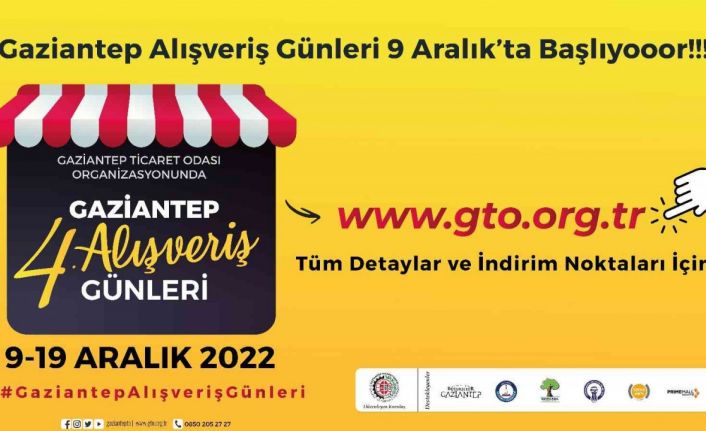 Gaziantep Ticaret Odası organizasyonunda, yüzlerce firmanın katılımıyla büyük indirimlerin yapılacağı geleneksel Gaziantep Alışveriş Günleri 9 Aralık’ta başlıyor.