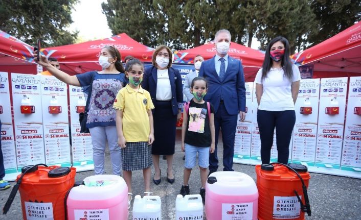 Gaziantep Büyükşehir Belediyesi’yle Gaziantep İl Milli Eğitim Müdürlüğü iş birliğinde yeni tip korona virüs’e (Covid-19) karşı hayata geçirilen “Güvenli Okul Projesi” kapsamında şehir merkezinde bulunan 500 okula yüzey dezenfektanı, sıvı el sabunu, yıkanabilir maske, el dezenfektan standı, sticker ve akülü dezenfektan sıkma makinasının dağıtımı için “Hijyen Malzemeleri Teslim Töreni” düzenlendi.