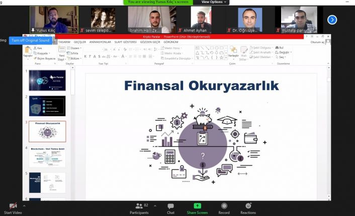 ZOOM video konferans yöntemiyle gerçekleştirilen ve blokzincir teknolojisi, kripto para, kripto para borsaları, kripto paralara yatırım yaparken nelere dikkat edilmeli başlıklarıyla konunun çok yönlü ele alındığı seminer, Akdeniz Üniversitesi Sigortacılık Bölüm Başkanı Öğretim Üyesi Doç. Dr. Yunus Kılıç’ı konuşmacı olarak ağırladı.