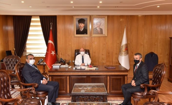 Güneydoğu Anadolu İhracatçı Birlikleri (GAİB) Koordinatör Başkanı Ahmet Fikret Kileci ve Güneydoğu Anadolu Tekstil ve Hammaddeleri İhracatçıları Birliği Yönetim Kurulu Üyesi Ahmet AÇIKGÖZ Kahramanmaraş Valisi Ömer Faruk Coşkun’u ziyaret ederek GAİB’in iştigal sahasında yer alan illere yönelik gerçekleştirilen maske desteğiyle ilgili bilgiler verdi. Bölge ihracatı hakkında da çeşitli bilgiler veren Kileci Kahramanmaraş’ın son dönemlerde gerçekleştirdiği ihracattaki gelişmenin önemine dikkat çekti. Vali Ömer Faruk Coşkun da Gaziantep’in komşu illere ve bölge illerine yönelik pandemi sürecinde verdiği desteğe dikkat çekerek bu süreçte vatandaşın maske ihtiyacının karşılanması için Kahramanmaraş’a gönderilen 175 bin adet maskenin önemli bir yer tutuğunu ifade ederek teşekkür etti.