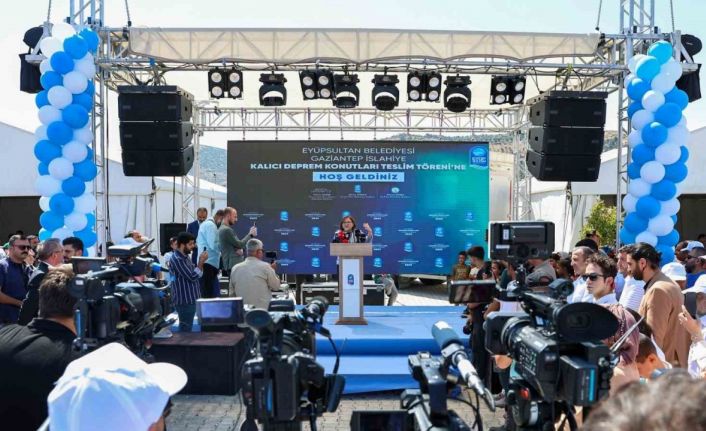 Kalıcı deprem konutlarının anahtar teslim töreninde açılış konuşması yapan Gaziantep Büyükşehir Belediye Başkanı Fatma Şahin, depremin ardından Eyüpsultan Belediyesi’nin desteğinin her zaman olduğunu vurgulayarak, “Sağına bakıyorsun Eyüpsultan orada, bir şeyler yapmaya çalışıyor. Neyi varsa vermeye çalışıyor. Bu çok kıymetli bir şey. Bu sebeple Eyüpsultan Belediye Başkanı Deniz Köken’e teşekkür ediyorum. Büyük millet olmanın gereği yapıldı. Herkes buraya koştu. Bütün dünya buraya koştu. Şimdi karşımızda kalıcı konutlarla Eyüpsultan başkanımızın, ilçe başkanımızın şahitliğiyle bugün açılışını yapıyoruz.” dedi.