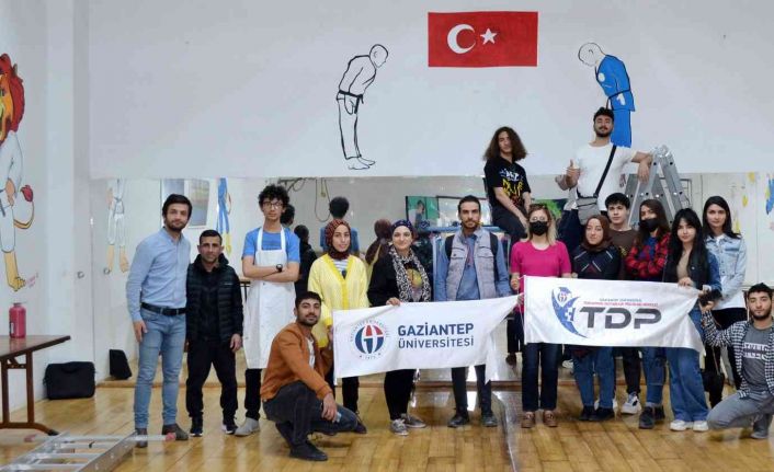 Gaziantep Üniversitesi (GAÜN) Toplumsal Duyarlılık Projeleri Merkezi bünyesindeki halı tasarımı programında eğitim gören 15 öğrenci, Gaziantep Şahinbey Karataş Spor Salonu’nda bulunan judo salonunun duvarlarını judo tekniklerinin animasyonlarıyla resmederek süsledi.