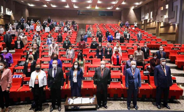GAÜN Rektör Yardımcısı Prof. Dr. Ayşe Balat, sempozyumdaki konuşmaları sonrası Cumhurbaşkanlığı Sosyal Politikalar Kurulu Üyesi Prof. Dr. Edibe Sözen’e hediye takdim etti.
