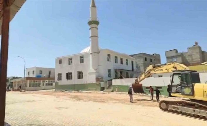 Kahramanmaraş merkezli 2 büyük depremde Karkamış’ta hasar alan bir cami kontrollü olarak yıkıldı.
