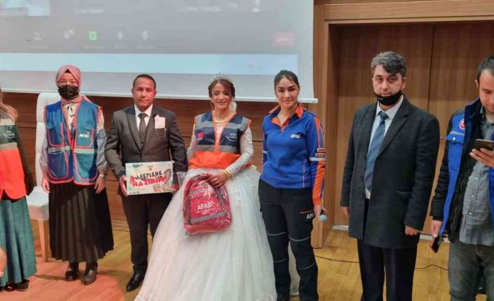 Gaziantep İl Afet ve Acil Durum Müdürlüğü koordinasyonunda Türkiye AFAD gönüllüleri online nikah törenine katıldı. Afet ve Acil Durum Yönetimi (AFAD) gönüllüsü gelin Pınar Özdemir’e Afet ve acil durum çantası hediye eden Gaziantep AFAD il gönüllü koordinatörü Ayşe Şahin damat Sadık Sağırekmekçi’den AFAD gönüllüsü olma sözü aldı.